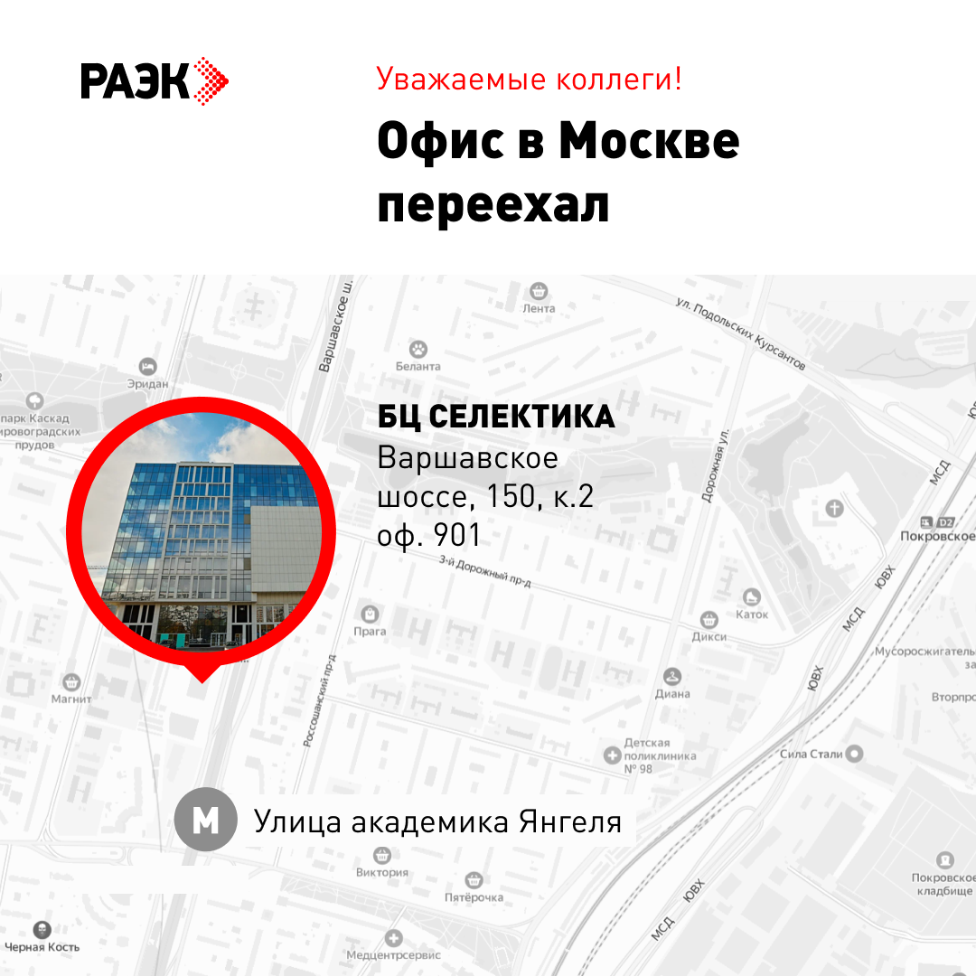 Новый адрес: Варшавское шоссе, 150, к.2, БЦ "Селектика", оф. 901.