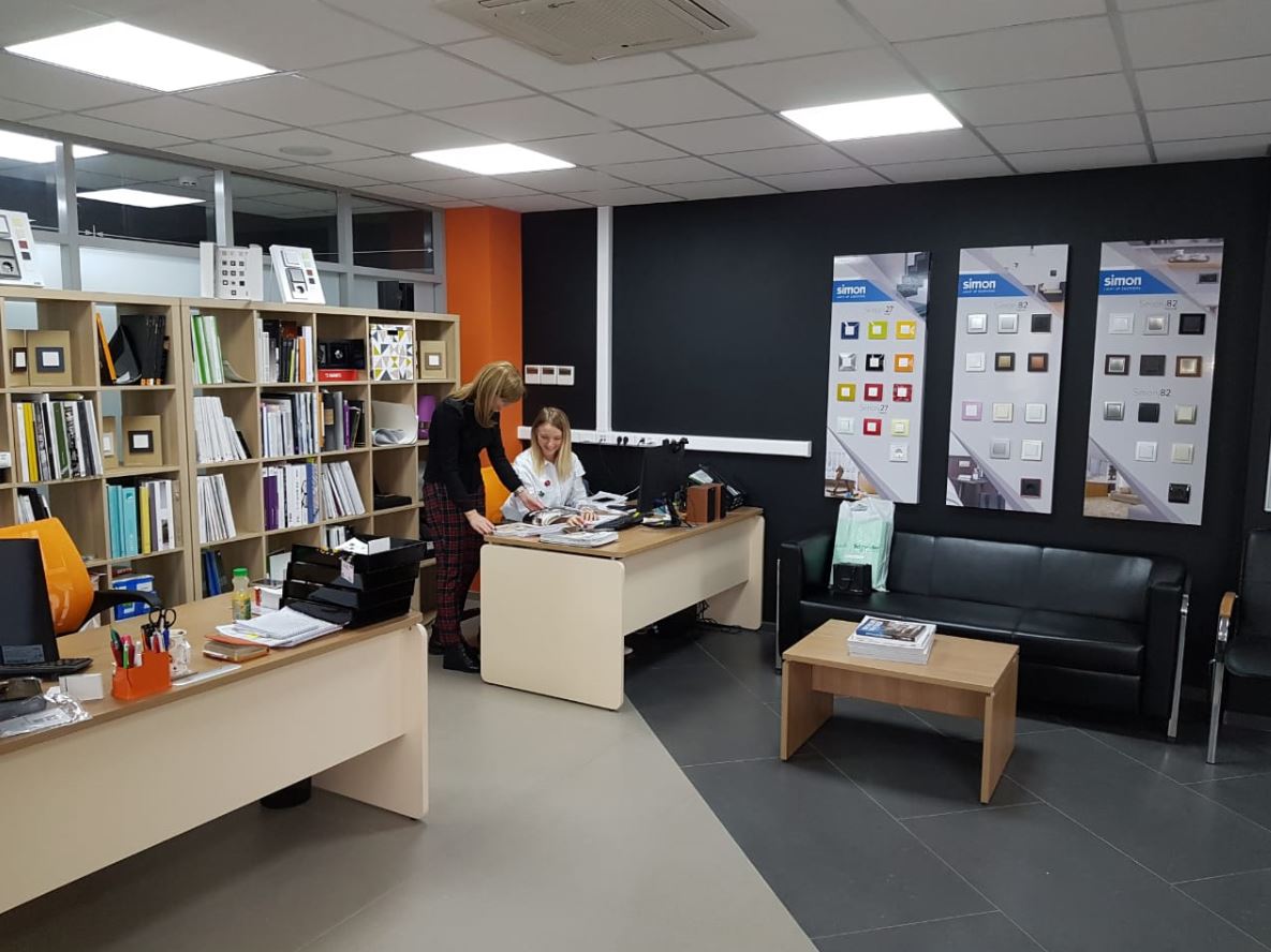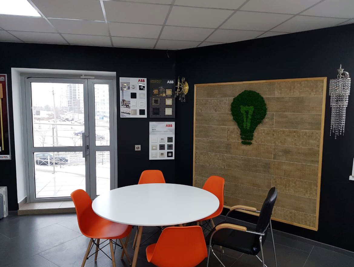 Новый офис Эlevel в Казани – это одновременно и рабочее пространство, и шоурум. Стенды ключевых поставщиков знакомят клиентов с продукцией. Благодаря им можно выбрать товар, наиболее подходящий не только внешне, но и по фактуре, материалам, функционалу. Также есть образцы сценарных выключателей, а в скором времени появятся системы «умного дома».