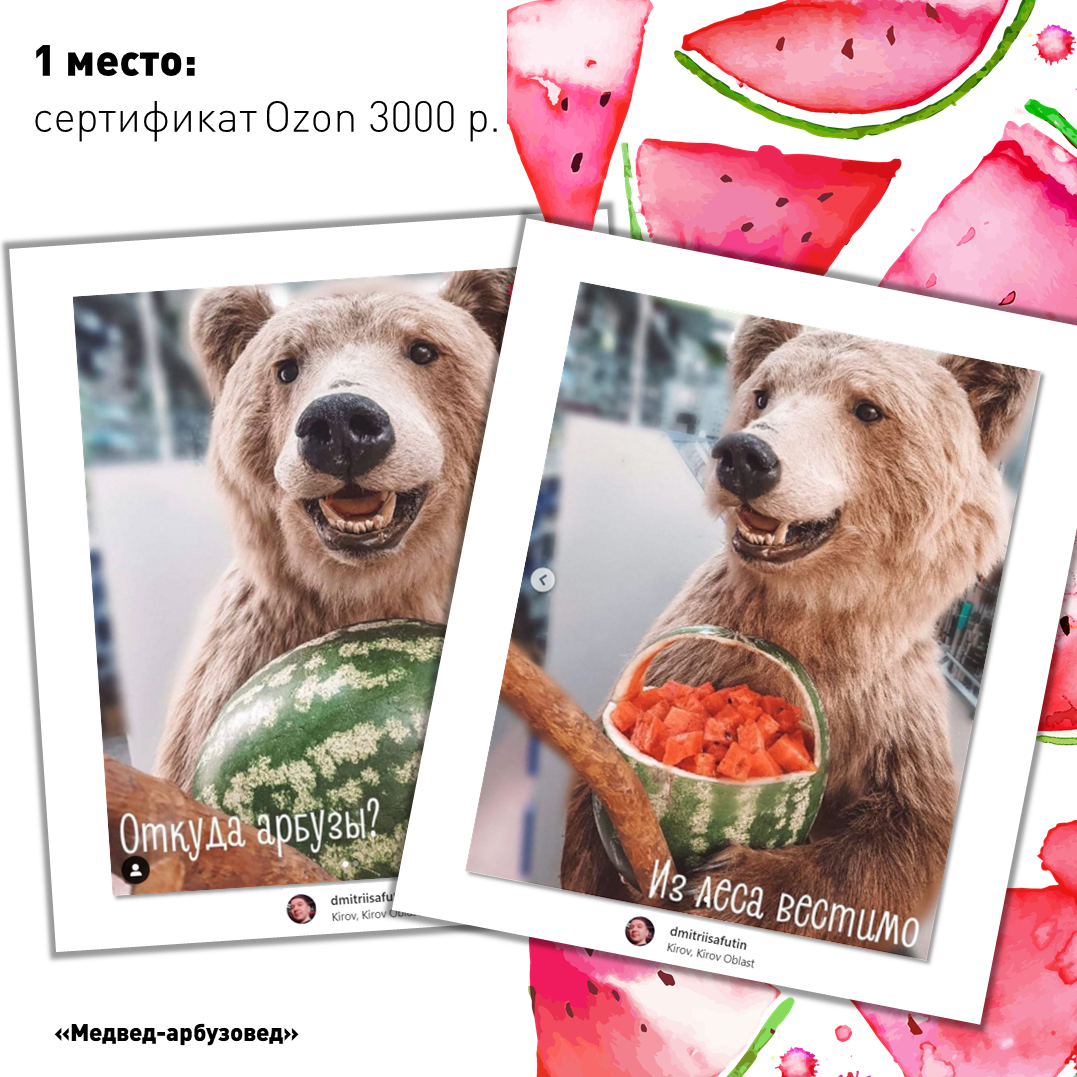 - 1 место. Медвед-арбузовед от @dmitriisafutin