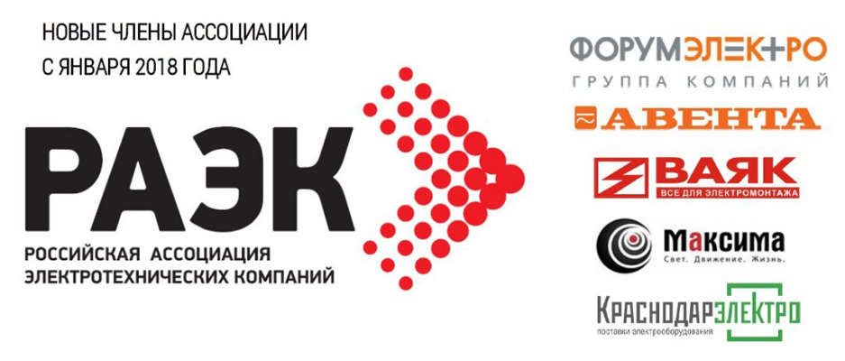 В январе 2018 года к РАЭК присоединились 5 новых участников — компании «ВАЯК», «Авента», «Максима», «Краснодарэлектро» и ГК «ФОРУМ ЭЛЕКТРО». Состав Ассоциации расширился до 17 компаний.