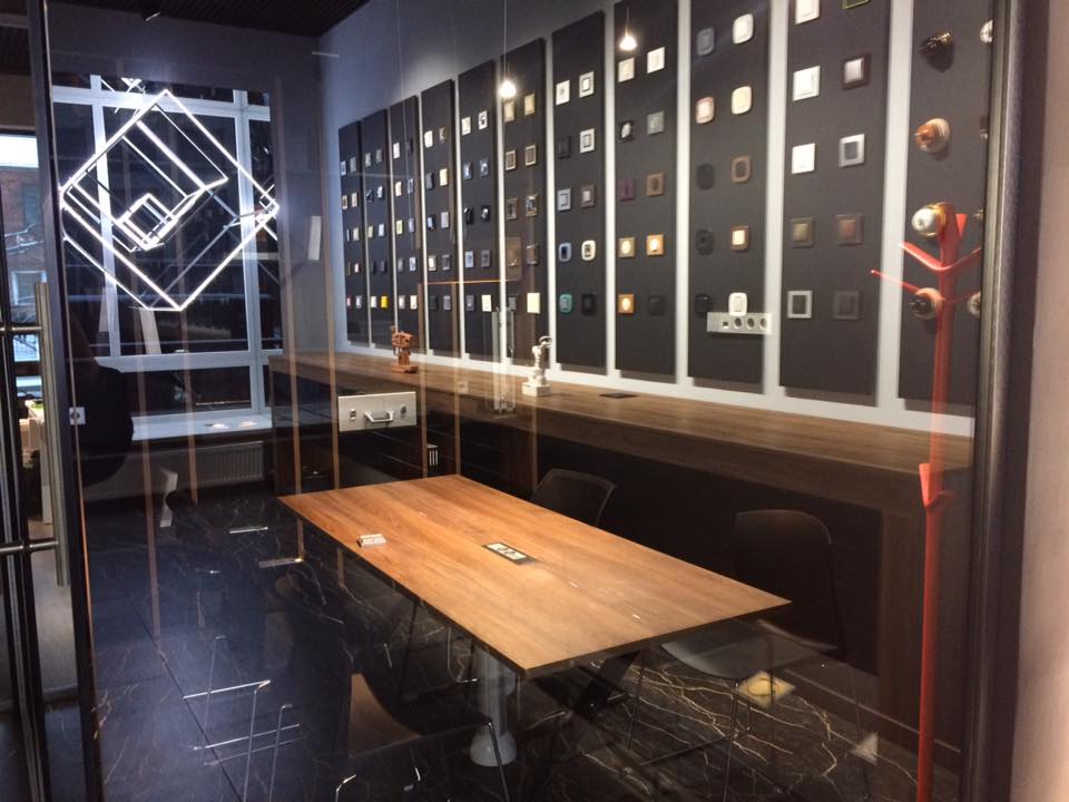 Клиенты могут обсудить важные вопросы с менеджерами в переговорной, выбрать необходимый свет и электроустановочные изделия из широкого ассортимента, представленного на стендах и в каталогах, а также подробнее узнать и попробовать функции «умного дома».