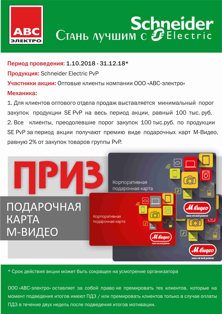 "АВС-электро" и Schneider Electric запустили акцию для оптовых клиентов дистрибьютора.