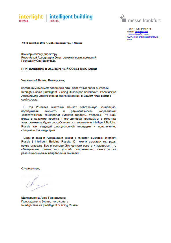 РАЭК и Interlight Russia | Intelligent building Russia расширяют своё сотрудничество. Виктор Свинцов, коммерческий директор Российской ассоциации электротехнических компаний, стал членом Экспертного совета выставки, состоящего из ведущих специалистов и профессионалов отрасли.
